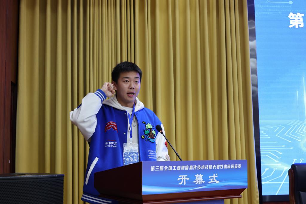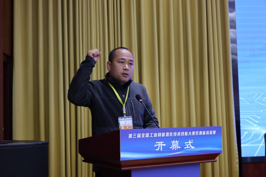 最后,黄宝荣讲话并宣布第三届全国工业和信息化技术技能大赛甘肃选拔赛比赛开赛。