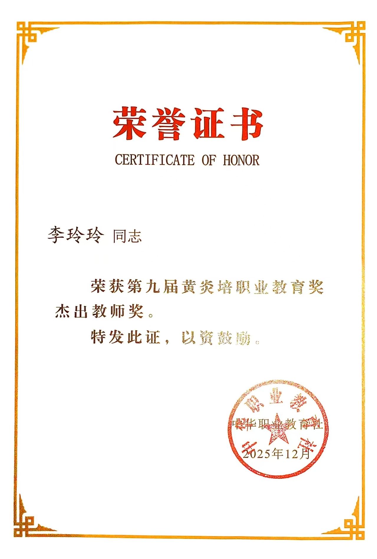 此次获奖既是对李玲玲教授个人职业教育业绩的充分肯定,也是我新宝测速6长期以来重视师资队伍建设、持续推进教育教学改革的重要体现。学新宝测速6将以此次获奖为契机,进一步弘扬黄炎培职业教育精神,加强教师队伍建设,引导广大教师潜心教书育人、积极追求卓越,不断深化内涵建设,提升人才培养质量,为服务国家战略与区域发展培养更多高水平技术技能人才。